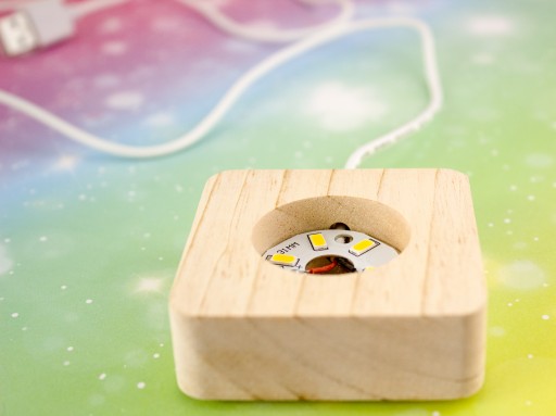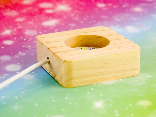 DREWNIANA PODSTAWKA LED POD PIRAMIDKĘ ORGONIT PODŚWIETLENIE USB 6 cm