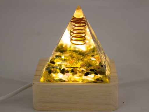 Zapraszamy do odkrycia doskonałego uzupełnienia dla Twojej piramidki orgonitowej lub innej przeźroczystej, czy szklanej, albo kryształowej figurki — wyjątkowej drewnianej podstawki z oświetleniem LED o białym ciepłym świetle.