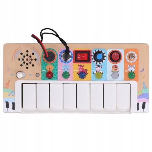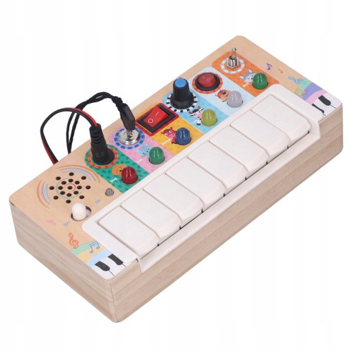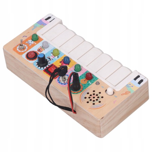 Funkcja:1. Włącznik światła LED: Ta elektroniczna tablica jest wyposażona w diody LED, które emitują delikatne i jasne kolory. Dzieci mogą włączyć odpowiednie światła LED, naciskając klawisz, zapewniając im dobre wrażenia wizualne.