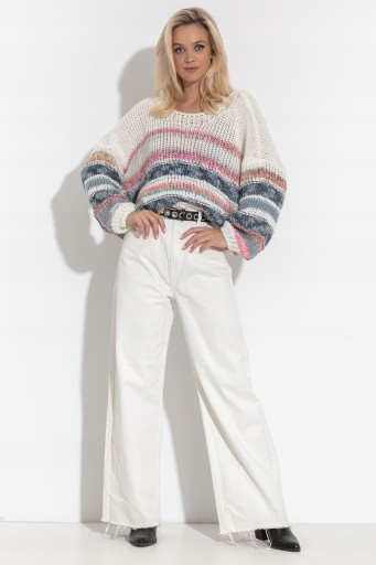 Wygodny, oversiowy sweter z dodatkiem ozdobnej przędzy wplecionej między klasyczne kolory.