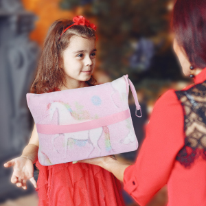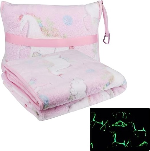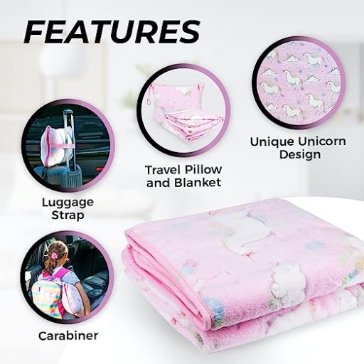- Podaruj ten przytulny koc i poduszkę jako prezent dla dziewczynki w wieku 0-12 lat! Poduszka podróżna dla malucha zawiera dołączony pasek bagażowy, który można przymocować do przedłużonego uchwytu walizki na kółkach, a także pasujący różowy karabińczyk do przymocowania do plecaka dziecka