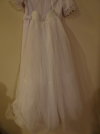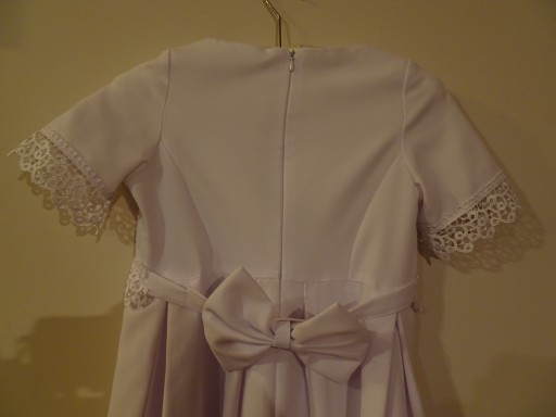 Sprzedam sukienkę komunijną, stan BDB, wyprana i gotowa do założenia. Sukienka z halką, dodaję też bolerko i rękawiczki