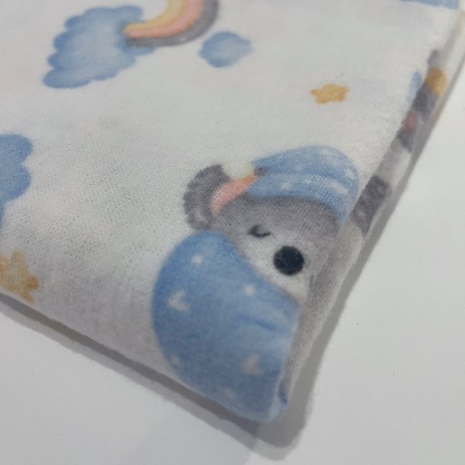 Pieluszka flanelowa kolorowa drukowana z wzorem o wymiarach 70x80 cm.