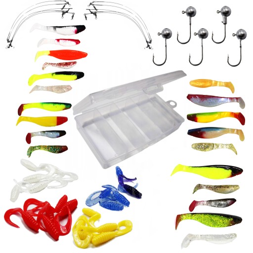 Zestaw przynęt spinningowych w pudełku wędkarskim - 56 elementów, idealny dla początkujących oraz zaawansowanych spinningistów. Różnorodność kolorystyczna oraz obciążeniowa oferowanego zestawu pozwala na dostosowanie przynęty na każde warunki. Zestaw na każda rybę drapieżna metodą na spinning.