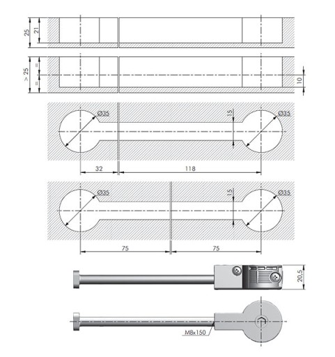 QUICK Ø35 Przeznaczony do łączenia blatów lub płyt meblowych grubości minimum 25mm.