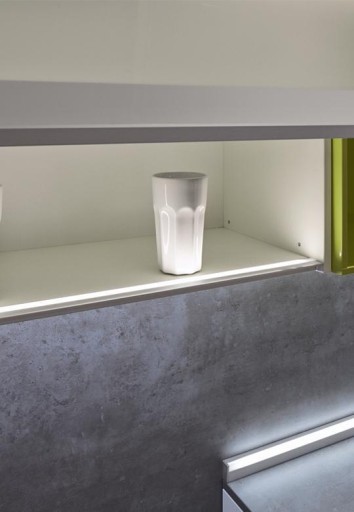 Profil do krawędzi korpusu, anodowany w kolorze aluminium. System dedykowany jest szczególnie do szafek bezuchwytowych. Profil stosowany jest w szafkach górnych z dwustronnym Led, dzięki któremu otrzymujemy oświetlenie nie tylko blatu roboczego w kuchni, ale również oświetlenie wnętrza szafki. Kanalik Led w profilu zaślepiamy osłonką. W ofercie mamy dostępne osłony transparentne i w kolorze mlecznym.