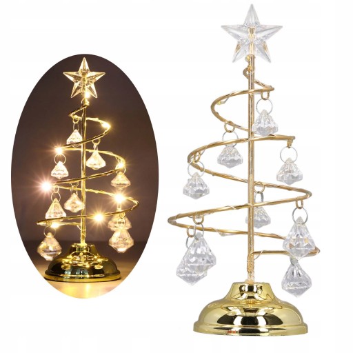 ZŁOTA CHOINKA KRYSZTAŁOWA LED LAMPKA OZDOBA Motyw bombka