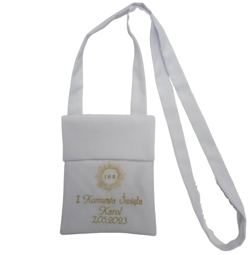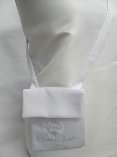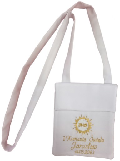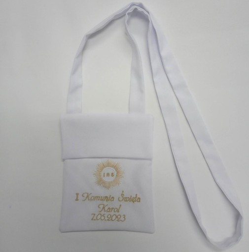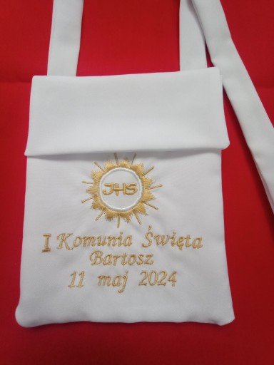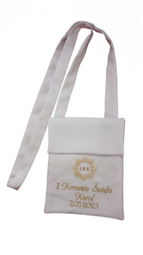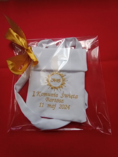 - Na sakiewce umieszczony jest napis I KOMUNIA ŚWIĘTA imię i data komunii