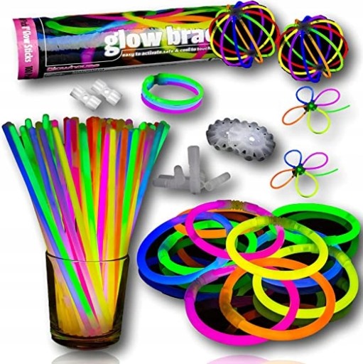 świeci przez ponad 8 godzin. Idealny na imprezy, festiwale, clubbing lub po prostu dla zabawy. 100 wysokiej jakości łączników do bransoletek. Dostępny w wielu jasnych i żywych kolorach. Łącznie 204 sztuki, w tym wszystkie złącza i pałeczki żarowe.