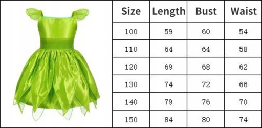 Uroczy kostium Wróżki - zielony Dzwoneczek Tinkerbel