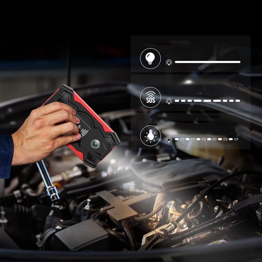 Jump starter wyposażony został w latarkę, która w nagłych przypadkach może okazać się wyjątkowo przydatna. Jej funkcjonalność pozawala oświetlić pożądany obszar oraz zapewni nam lepszą widoczność i co za tym idzie nasze bezpieczeństwo. Latarka działa w 2 trybach, mocnym stałym świetle oraz w trybie migotania.