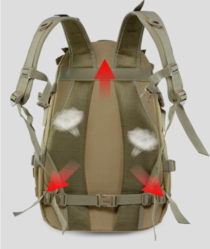 ✅ System MOLLE umożliwia montaż dodatkowych zasobników, karimat, śpiworów itp., dając Ci swobodę dostosowywania plecaka do swoich potrzeb.
