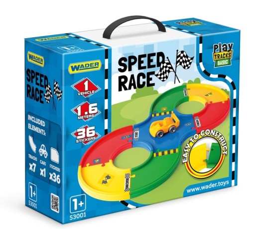 Zestaw Tor Wyścigowy z serii Play Tracks Basic to doskonała propozycja dla miłośników zabawy trasami samochodowymi. To nowoczesna, lekka i prosta w montażu konstrukcja składająca się z różnokolorowych elementów tras o łącznej długości 1,6 m, które po złączeniu tworzą tor wyścigowy. Do zestawu dołączone jest 1 autko Kid Cars, oraz komplet naklejek. Wszystkie elementy wykonane są z wysokiej jakości bezpiecznego dla dzieci i trwałego tworzywa, dzięki czemu zachowują kształt i kolor przez wiele lat. Zabawka zapakowana jest w estetyczne pudełko z rączką, idealne na prezent.