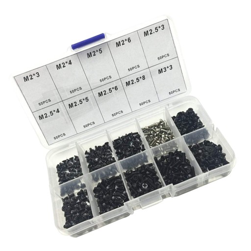 ✅ Zawiera 50 szt. śrub M2x3, 50 szt. śrub M2x4, 50 szt. śrub M2x5, 50 szt. śrub M2x6, 50 szt. śrub M2,5x3, 50 szt. śrub M2,5x4, 50 szt. śrub M2,5x5, 50 szt. śrub M2,5x6, 50 szt. śrub M2,5x8 i 50 szt. M3x3 śruby