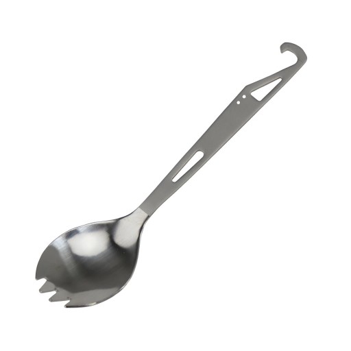 Camo Military Gear - Niezbędnik ST9 (NZL-CL-ST9) to wytrzymałe i uniwersalne narzędzie wykonane z wysokiej jakości stali nierdzewnej 420. Jest niezastąpionym elementem wyposażenia podczas każdej wyprawy w teren czy survivalowej wycieczki. Duża funkcjonalność powoduje, że świetnie sprawdzi się także jako przedmiot codziennego użytku. Pomimo niewielkich rozmiarów posiada komplet niezbędnych sztućców - widelec oraz łyżkę. Charakteryzuje się niską wagą (26 g) oraz niewielkimi rozmiarami (165 x 38 mm). W zestawie z niezbędnikiem znajduje się etui z tworzywa. Camo Military Gear to polska marka specjalizująca się w dystrybucji sprzętu i odzieży skierowanej dla miłośników asg oraz militariów.