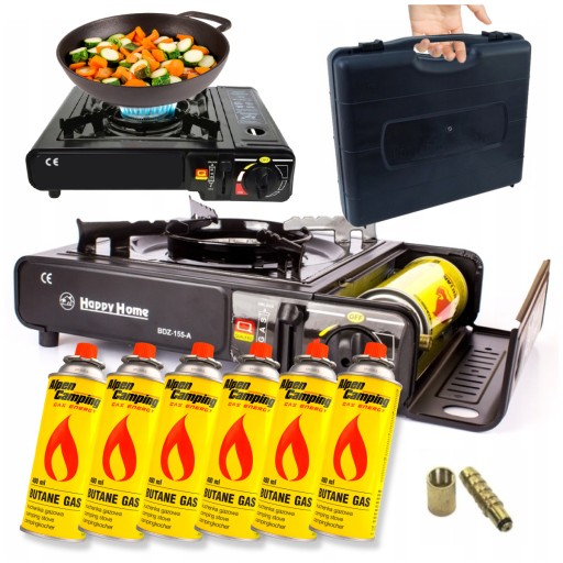 KUCHENKA TURYSTYCZNA Z REDUKTOREM 2w1 W WALIZCE + KARTUSZ GAZOWY x6