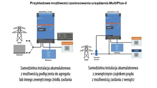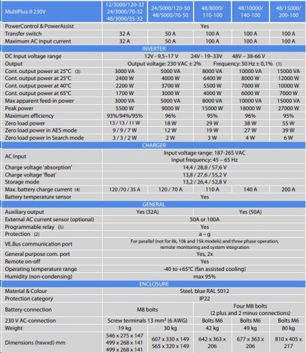 Wydajny przemiennik wielofunkcyjny MultiPlus-II 48/3000/35-32 inwerter sinusoidalny, zaawansowana ładowarka akumulatorów z technologią ładowania adaptacyjnego oraz szybki przełącznik samoczynnego załączania rezerwy.