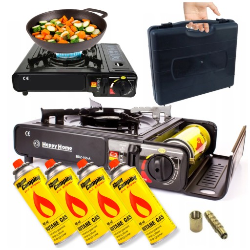 ТУРИСТИЧЕСКАЯ ГАЗОВАЯ ПЛИТА 2в1 С РЕДУКТОРОМ И КОРПУСОМ + 4 ГАЗОВЫХ КАРТРИДЖА