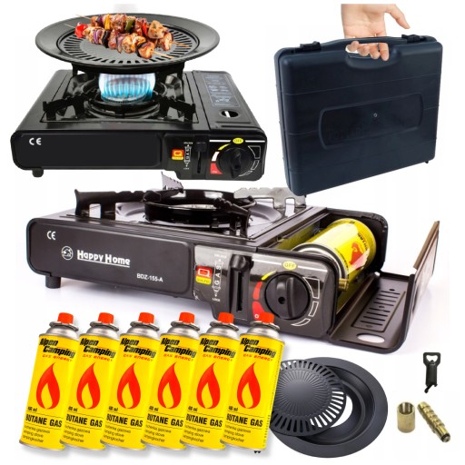 KUCHENKA TURYSTYCZNA Z REDUKTOREM 2w1 W WALIZCE + GRILL + KARTUSZ GAZOWY x6