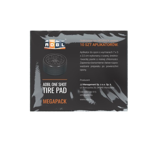 ADBL One Shot Tire Pad – to aplikator do opon o wymiarach 7 x 5 x 2,5 cm wykonany z szarej, średnio-twardej pianki o niskiej chłonności. Zapewnia równomierne i łatwe rozprowadzane preparatu po powierzchni opony.