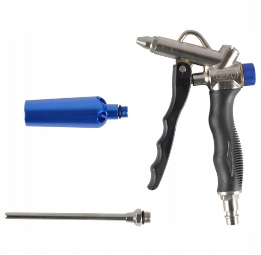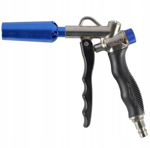 Profesjonalny pistolet do przedmuchiwania renomowanej marki narzędziowej GEKO wyposażony w dyszę Venturiego oraz dysze krótką i długo.