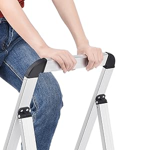 Z wygodnym i wygodnym uchwytem, dzięki czemu drabina jest łatwa do wspinania się i przenoszenia. Górny uchwyt zapewnia bezpieczeństwo podczas naciskania pedału.