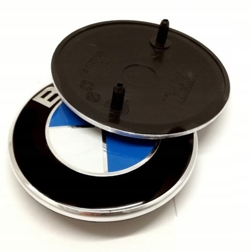 Emblemat BMW o średnicy 82mm, rozstaw bolców 56mm.