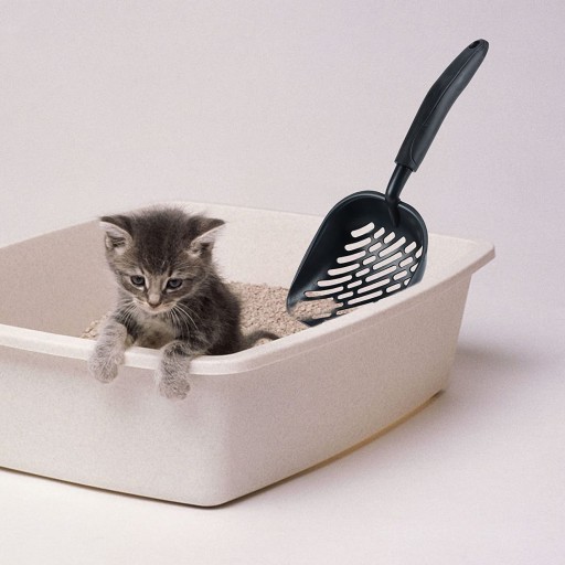Łyżka do żwirku dla kota (powlekany skośny czarny uchwyt)
