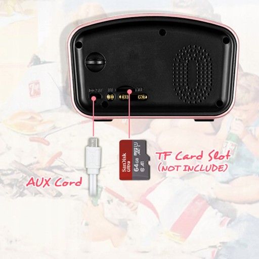 ✅Tryb AUX/Gniazdo karty TF: Kompaktowy głośnik bezprzewodowy Bluetooth w stylu vintage jest wyposażony w interfejs AUX do obsługi telefonu lub obsługi karty TF bezpośrednio z tyłu w celu zastosowania muzyki.