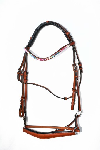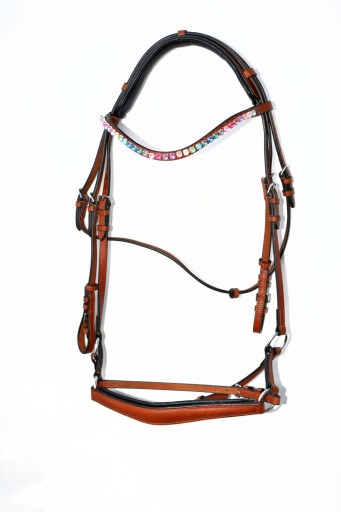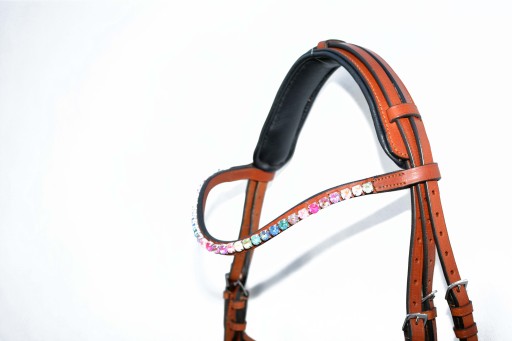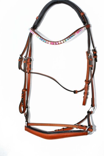 Ogłowi   Anatomiczne profilowane   roz.FULL Ogłowie z naczółkiem Swarovskiego wyprodukowane w zakładzie Rymarskim w Anglii .Wykonane z  najwyższej     jakości   skóry bydlęcej  bardzo miękkiej   i  miłej  w dotyku ,wykonane w całości ze skóry Angielskiej ,  część  potyliczna  i  naczółek  poszyty  miękko  skórą  ,aby zapobiec  obtarciom  .Ogłowie  zapinane i regulowane  jest  na stabilne  sprzączki , wykonane   z bardzo  dobrej   nierdzewnej  stali szlachetnej . Zapraszam do zakupu. Aukcja dotyczy ogłowia widocznego na zdjęciach .