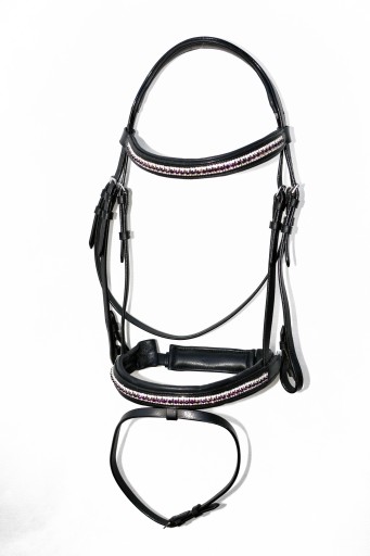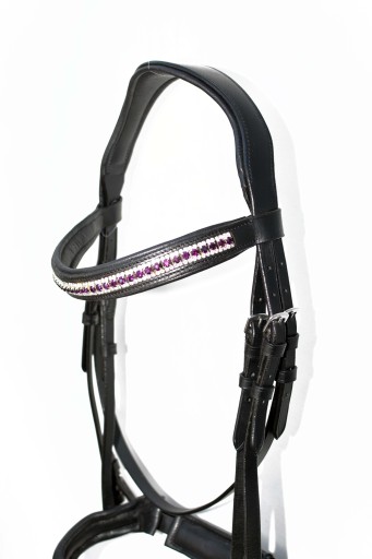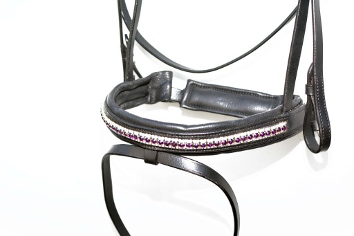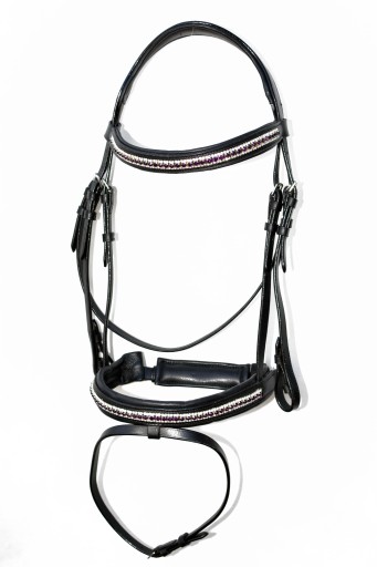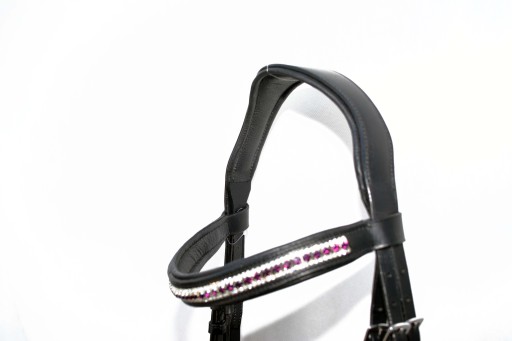 Ogłowi   Anatomiczne profilowane   roz.FULL Ogłowie z naczółkiem Swarovskiego wyprodukowane w zakładzie Rymarskim w Anglii .Wykonane z  najwyższej     jakości   skóry bydlęcej  bardzo miękkiej   i  miłej  w dotyku ,wykonane w całości ze skóry Angielskiej ,  część  potyliczna  i  naczółek  poszyty  miękko  skórą  ,aby zapobiec  obtarciom  .Ogłowie  zapinane i regulowane  jest  na stabilne  sprzączki , wykonane   z bardzo  dobrej   nierdzewnej  stali szlachetnej . Zapraszam do zakupu. Aukcja dotyczy ogłowia widocznego na zdjęciach .