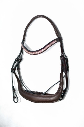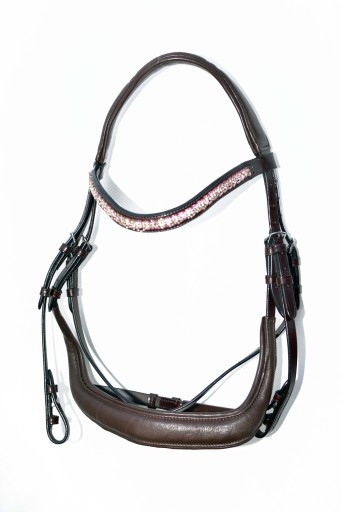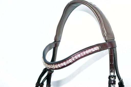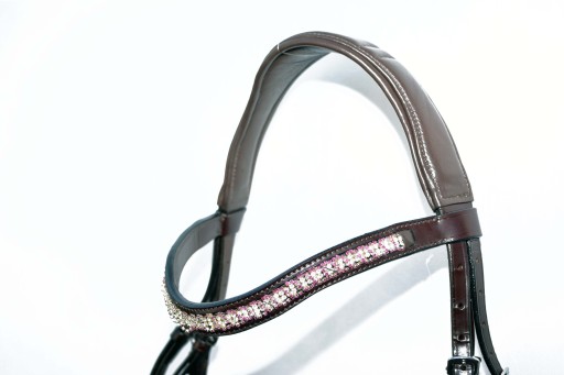 Ogłowi   Anatomiczne profilowane   roz.FULL Ogłowie z naczółkiem Swarovskiego wyprodukowane w zakładzie Rymarskim w Anglii .Wykonane z  najwyższej     jakości   skóry bydlęcej  bardzo miękkiej   i  miłej  w dotyku ,wykonane w całości ze skóry Angielskiej ,  część  potyliczna  i  naczółek  poszyty  miękko  skórą  ,aby zapobiec  obtarciom  .Ogłowie  zapinane i regulowane  jest  na stabilne  sprzączki , wykonane   z bardzo  dobrej   nierdzewnej  stali szlachetnej . Zapraszam do zakupu. Aukcja dotyczy ogłowia widocznego na zdjęciach .