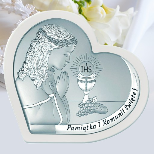 OBRAZEK SREBRNY SERCE PAMIĄTKA I KOMUNII ŚWIĘTEJ DZIEWCZYNKA