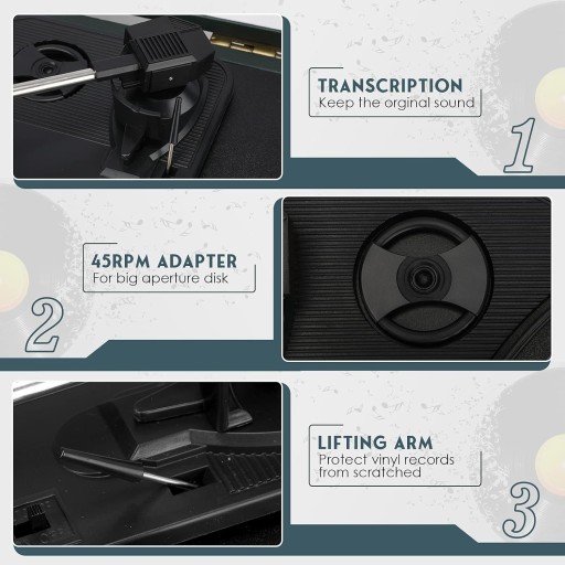 Ten przenośny gramofon firmy ASMUSE to absolutny klasyk i pełen funkcji. Zawiera zintegrowaną technologię Bluetooth do bezprzewodowego przesyłania muzyki z telefonu, 3-biegowy gramofon (33 jedna trzecia, 45, 78 obr./min), wbudowane głośniki i gniazdo AUX 3,5 mm do odtwarzania muzyki z dowolnego urządzenia nie obsługującego Bluetooth. Możesz odtwarzać muzykę tylko przez USB, ale również nagrywać winyl. Z gniazdem słuchawkowym dostępna jest muzyka, nie przeszkadzając innym osobom. Dzięki przenośnej konstrukcji i uchwytowi do noszenia możesz cieszyć się muzyką wszędzie.