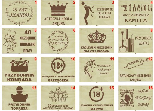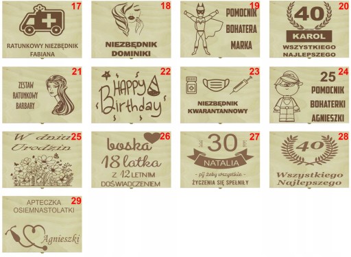 Przedmiotem oferty jest Pudełko na Urodziny Niezbędnik Prezent na 18 30 40 50