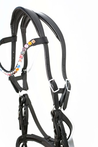 Ogłowi   Anatomiczne profilowane   roz.FULL Ogłowie z naczółkiem Swarovskiego wyprodukowane w zakładzie Rymarskim w Anglii .Wykonane z  najwyższej     jakości   skóry bydlęcej  bardzo miękkiej   i  miłej  w dotyku ,wykonane w całości ze skóry Angielskiej ,  część  potyliczna  i  naczółek  poszyty  miękko  skórą  ,aby zapobiec  obtarciom  .Ogłowie  zapinane i regulowane  jest  na stabilne  sprzączki , wykonane   z bardzo  dobrej   nierdzewnej  stali szlachetnej . Zapraszam do zakupu. Aukcja dotyczy ogłowia widocznego na zdjęciach .