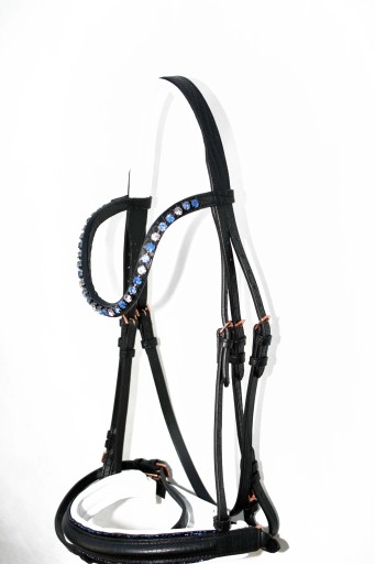Ogłowi   Anatomiczne profilowane   roz.FULL Ogłowie z naczółkiem Swarovskiego wyprodukowane w zakładzie Rymarskim w Anglii .Wykonane z  najwyższej     jakości   skóry bydlęcej  bardzo miękkiej   i  miłej  w dotyku ,wykonane w całości ze skóry Angielskiej ,  część  potyliczna  i  naczółek  poszyty  miękko  skórą  ,aby zapobiec  obtarciom  .Ogłowie  zapinane i regulowane  jest  na stabilne  sprzączki , wykonane   z bardzo  dobrej   nierdzewnej  stali szlachetnej . Zapraszam do zakupu. Aukcja dotyczy ogłowia widocznego na zdjęciach .