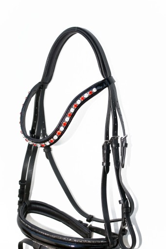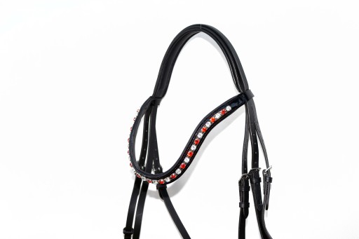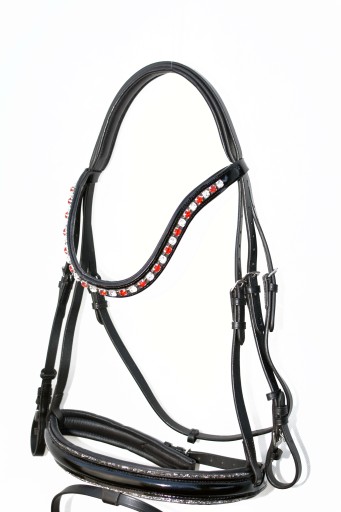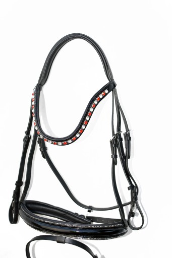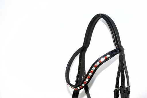 Ogłowi   Anatomiczne profilowane   roz.FULL Ogłowie z naczółkiem Swarovskiego wyprodukowane w zakładzie Rymarskim w Anglii .Wykonane z  najwyższej     jakości   skóry bydlęcej  bardzo miękkiej   i  miłej  w dotyku ,wykonane w całości ze skóry Angielskiej ,  część  potyliczna  i  naczółek  poszyty  miękko  skórą  ,aby zapobiec  obtarciom  .Ogłowie  zapinane i regulowane  jest  na stabilne  sprzączki , wykonane   z bardzo  dobrej   nierdzewnej  stali szlachetnej . Zapraszam do zakupu. Aukcja dotyczy ogłowia widocznego na zdjęciach .