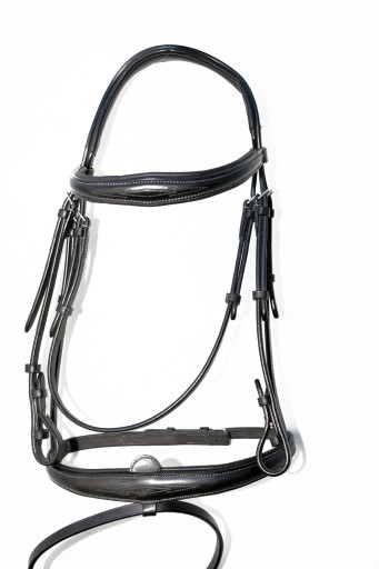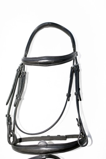 Ogłowi   Anatomiczne profilowane   roz.FULL Ogłowie z naczółkiem Swarovskiego wyprodukowane w zakładzie Rymarskim w Anglii .Wykonane z  najwyższej     jakości   skóry bydlęcej  bardzo miękkiej   i  miłej  w dotyku ,wykonane w całości ze skóry Angielskiej ,  część  potyliczna  i  naczółek  poszyty  miękko  skórą  ,aby zapobiec  obtarciom  .Ogłowie  zapinane i regulowane  jest  na stabilne  sprzączki , wykonane   z bardzo  dobrej   nierdzewnej  stali szlachetnej . Zapraszam do zakupu. Aukcja dotyczy ogłowia widocznego na zdjęciach .