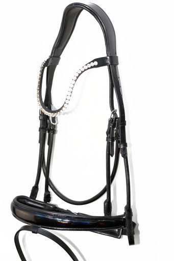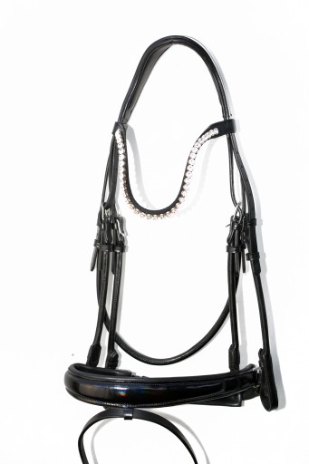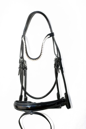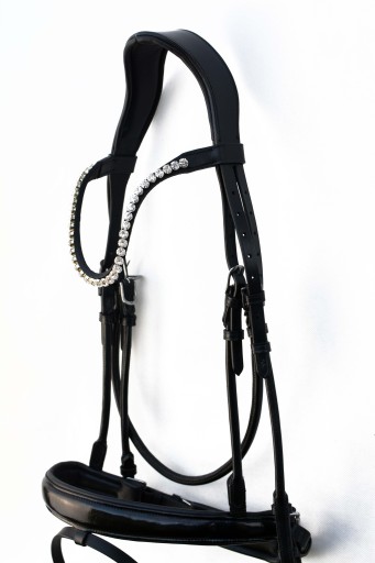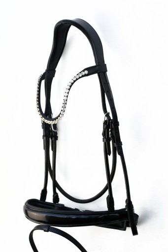 Ogłowi   Anatomiczne profilowane   roz.FULL Ogłowie z naczółkiem Swarovskiego wyprodukowane w zakładzie Rymarskim w Anglii .Wykonane z  najwyższej     jakości   skóry bydlęcej  bardzo miękkiej   i  miłej  w dotyku ,wykonane w całości ze skóry Angielskiej ,  część  potyliczna  i  naczółek  poszyty  miękko  skórą  ,aby zapobiec  obtarciom  .Ogłowie  zapinane i regulowane  jest  na stabilne  sprzączki , wykonane   z bardzo  dobrej   nierdzewnej  stali szlachetnej . Zapraszam do zakupu. Aukcja dotyczy ogłowia widocznego na zdjęciach .