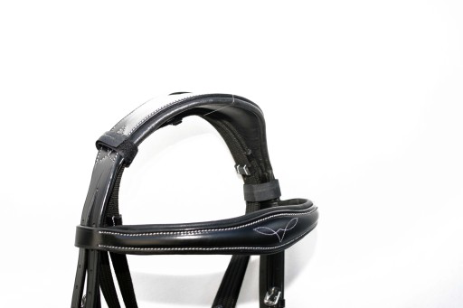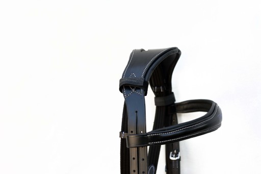 Ogłowi Anatomiczne profilowane + wodze roz.FULL Ogłowie z naczółkiem Swarovskiego wyprodukowane w zakładzie Rymarskim w Anglii .Wykonane z najwyższej jakości skóry bydlęcej bardzo miękkiej i miłej w dotyku ,wykonane w całości ze skóry Angielskiej , część potyliczna i naczółek poszyty miękko skórą ,aby zapobiec obtarciom .Ogłowie zapinane i regulowane jest na stabilne sprzączki , wykonane z bardzo dobrej nierdzewnej stali szlachetnej . Zapraszam do zakupu. Aukcja dotyczy ogłowia widocznego na zdjęciach .