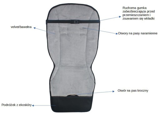 Uniwersalna dwustronna wkładka została zaprojektowana tak, aby pasowała do większości modeli spacerówek.