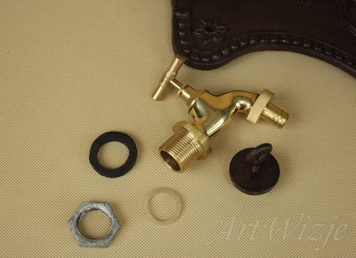 W zestawie mosiężny kran o gwincie 3/4 cala służący do wkręcenia we wcześniej przygotowane przyłącze. Zlew posiada w dolnej części otwór służący do odprowadzania wody.
