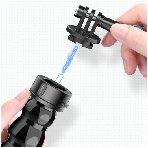 Aby przełożyć kamerkę z Gooseneck Mount na kijek do selfi wystarczy, że kijek również dysponuje złączem w systemie Go-Quick II. Taka zmiana zajmuję kilka sekund a przy tym jest to pewne połączenie dzięki dodatkowej mechanicznej blokadzie.