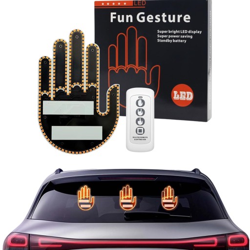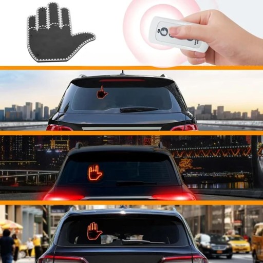 RĘKA LED Sygnalizator Gestów na Tylną Szybę Samochodu Środkowy Palec +PILOT