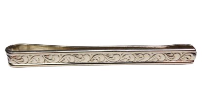 Серебряный зажим для галстука с растительными мотивами ВИНТАЖ