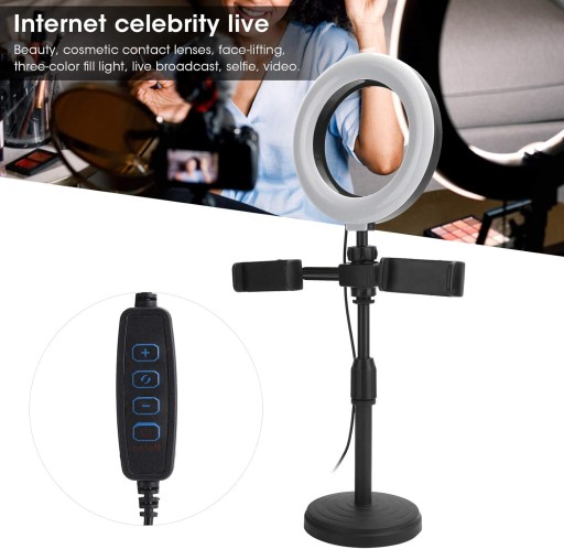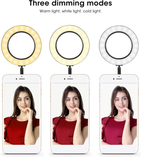 OWIETLENIE PIERCIENIOWE LED Owietlenie piercieniowe jest wykonane z wysokiej jakoci materiaów plastikowych i metalowych które s mocne i trwae. Dugo przewodu zasilajcego wynosi okoo 185 cm728 cala i spenia wikszo warunków uytkowania. Upikszanie na miejscu i wiato wypeniajce trzy w jednym obracajc uchwyt aby dostosowa kt 3 KOLORY WIATA I 9 POZIOMóW JASNOCI Piercień wietlny ma 3 kolory wiata ciepe wiato biae wiato chodne wiato kady tryb ma 9 regulowanych jasnoci zakres ciemniania wynosi od 1 do 100 co wystarczy aby speni róne potrzeby potrzeby owietleniowe ODCZANY UCHWYT NA TELEFON Wyposaony w klips do telefonu moesz zamontowa telefon na klipsie telefonu. wiato piercieniowe mona obraca o 360 stopni a kt klipsa do telefonutelefonuaparatuwiata piercieniowego mona atwo regulowa co nie tylko pozwala uzyska lepszy kt widzenia telefonu ale take najlepszy kt wiata wypeniajcego BEZPIECZNE ZASILANIE USB napicie wejciowe 5 V niskie zuycie energii bezpieczne i niezawodne urzdzenia zasilane przez USB takie jak komputery laptopy power banki adowarki do telefonów komórkowych mog by uywane jako zasilacz do lampek do selfie wic nie nie trzeba si martwi o zasilacze SZEROKIE ZASTOSOWANIE czc uchwyt na telefon i lampk piercieniow do selfie jest to profesjonalne narzdzie do tworzenia wideonagrywania na ywo za pomoc smartfona lub komputera. Idealne dodatkowe wiato do makijau transmisji na ywo selfie sesji zdjciowych nagrań wideo nauczania online i nie tylko