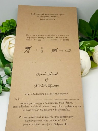 W środku zaproszenia możemy wpisać dowolny wierszyk, cytat.