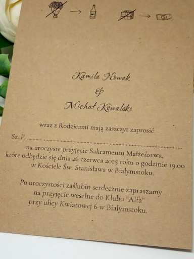 Po otrzymaniu tych informacji wykonujemy projekt zaproszenia i przesyłamy Państwu e-mailem do akceptacji (do 48 godzin).
