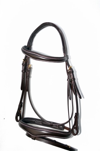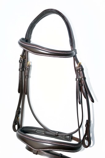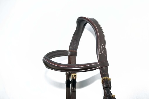 Ogłowi Anatomiczne profilowane roz.FULL Ogłowie wyprodukowane w zakładzie Rymarskim w Anglii .Wykonane z najwyższej jakości skóry bydlęcej bardzo miękkiej i miłej w dotyku ,wykonane w całości ze skóry Angielskiej , część potyliczna i naczółek poszyty miękko skórą ,aby zapobiec obtarciom .Ogłowie zapinane i regulowane jest na stabilne sprzączki , wykonane z bardzo dobrej nierdzewnej stali szlachetnej . Zapraszam do zakupu. Aukcja dotyczy ogłowia widocznego na zdjęciach .